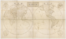 世界地図作成の命を受けた幕府天文方の高橋景保が、大坂の天文学者や長崎のオランダ通詞らの協力のもと、3年あまりの歳月を費やして製作・上呈した平射図法による両半球の世界図。当時世界最高水準の地図であり、また蘭学系世界図の代表作としても知られる。本図は後に、銅版画家・亜欧堂田善によって銅版印刷も行なわれた。